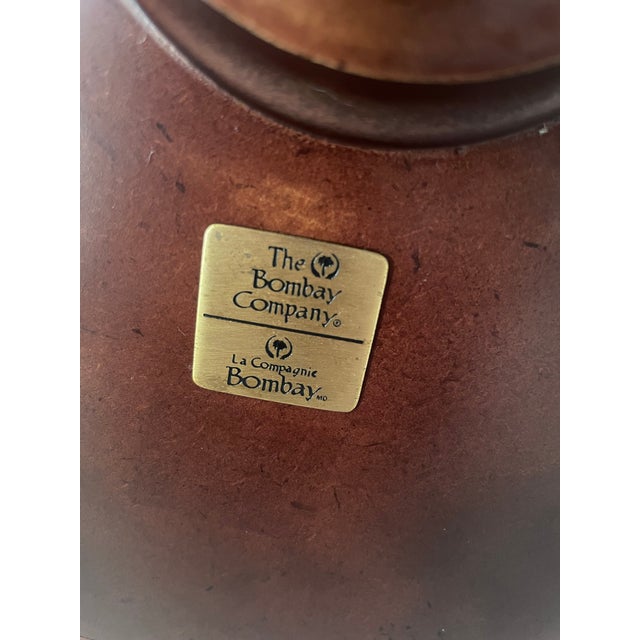 Vintage Bombay Company Pie Crust Leather Top Pedestal Side Table Plant Stand Inox Wind